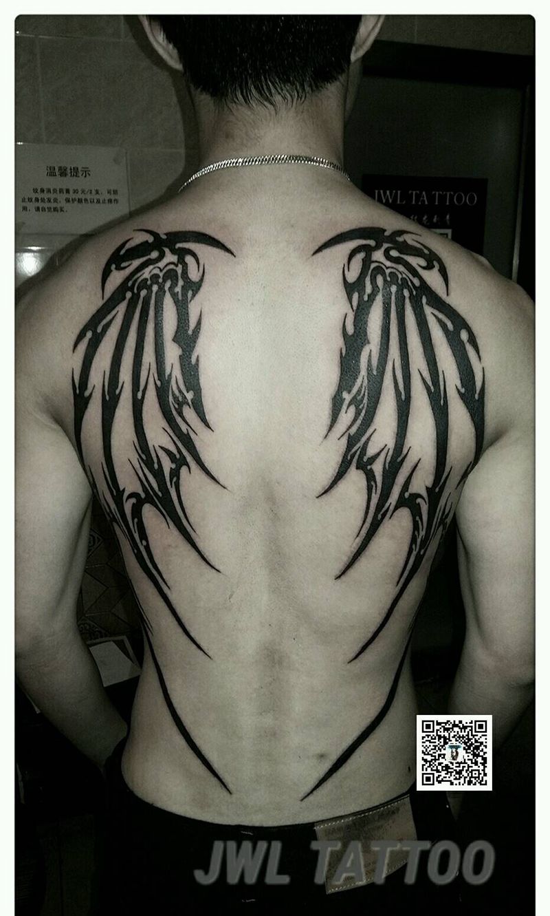 黑灰满背纹身图案