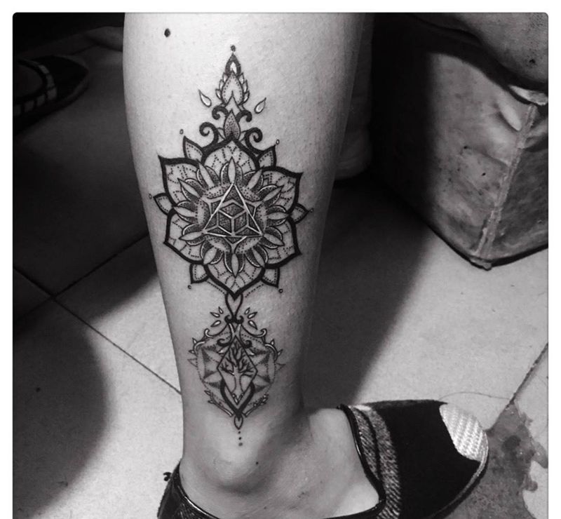 • T网红王老大花腿龙纹身图片_腿部新传统纹身图案