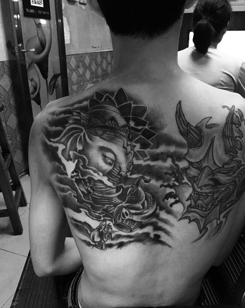 当前位置: 首页 >广东省肇庆市纹身店-九青龍纹身纹身图案>象神纹身图片