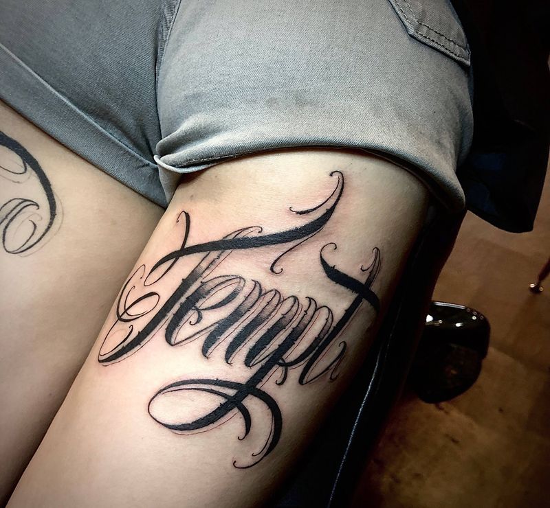 当前位置: 首页 >广东省惠州市纹身店-不开心刺青纹身图案>手绘花体字纹身图片_臀部腿部花体字纹身图案
