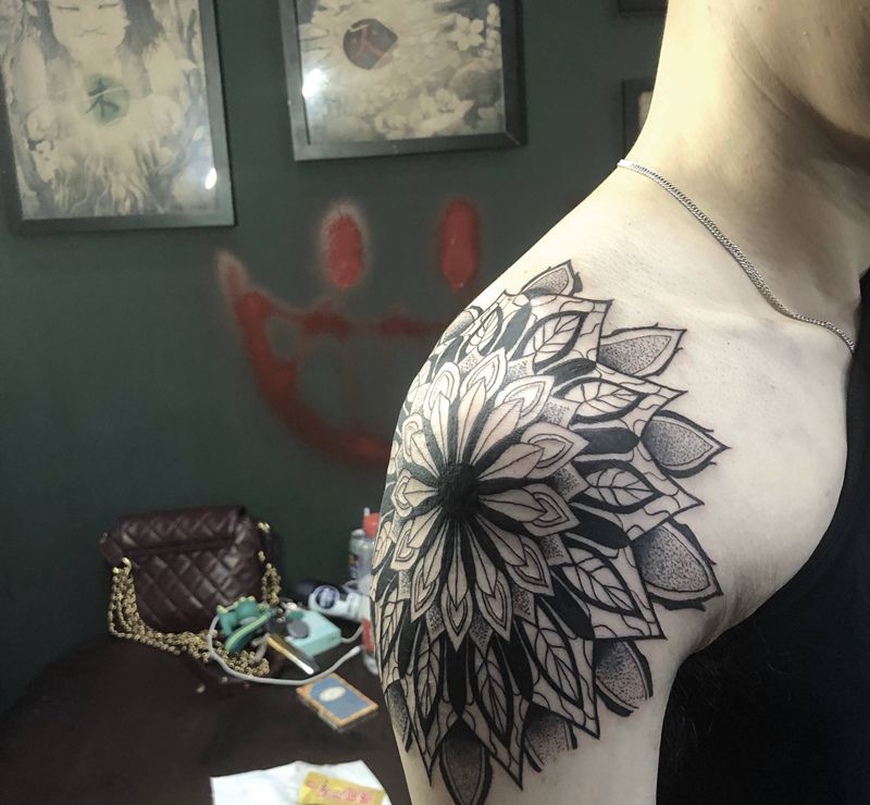 • 纹身吧推荐的披肩图腾半胛纹身图案作品展示