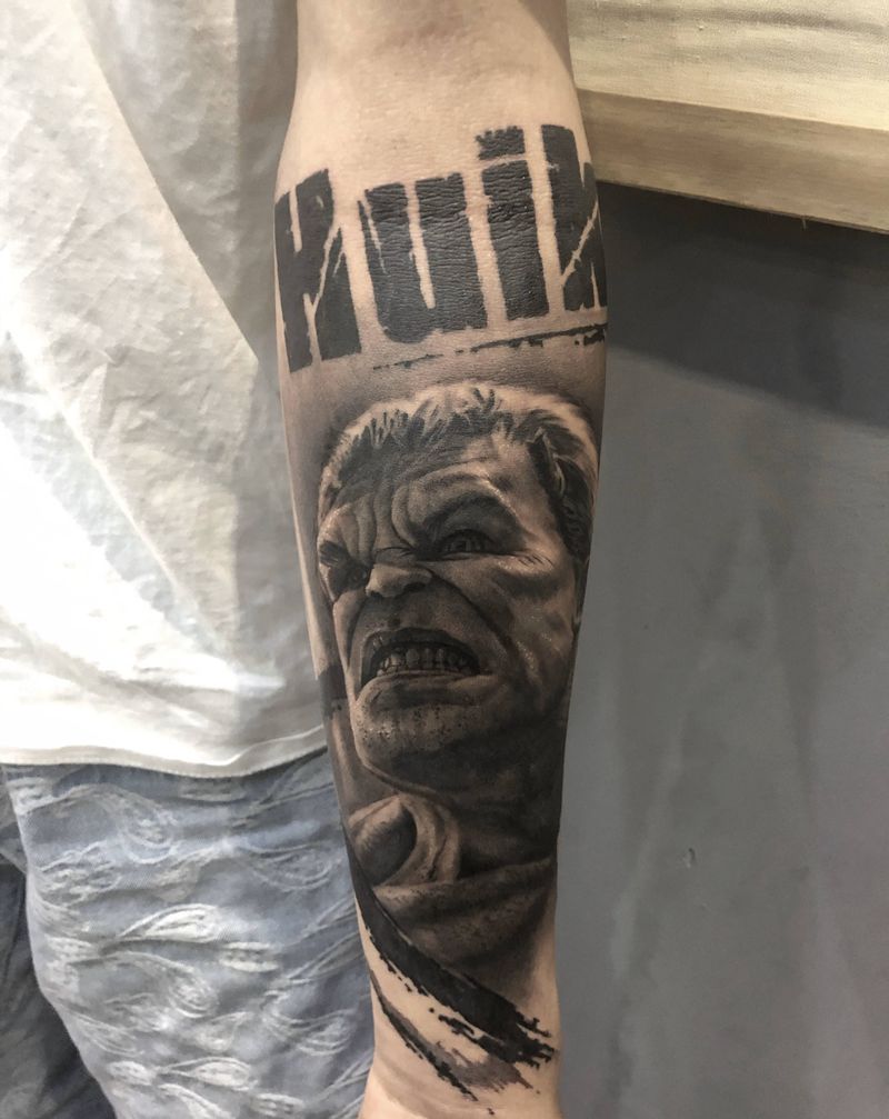 当前位置: 首页 >广东省惠州市纹身店-不开心刺青纹身图案>绿巨人纹身图片_手臂手部欧美写实纹身图案