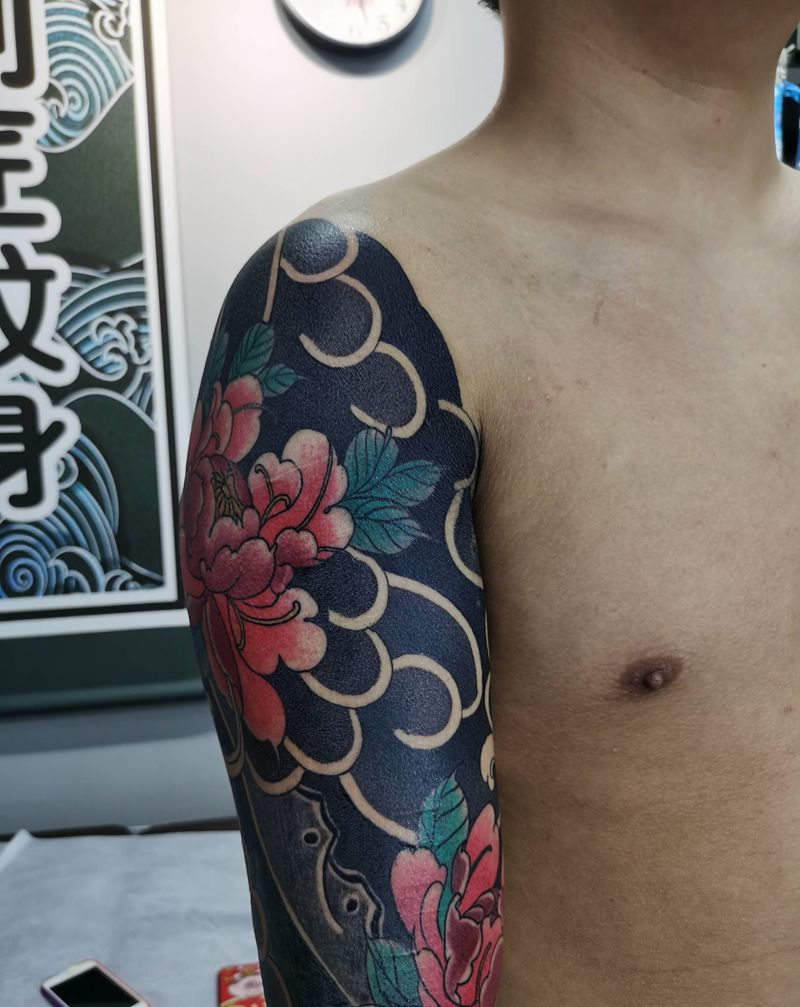 当前位置: 首页 >广东省惠州市纹身店-惠州刺匠纹身纹身图案>老传统牡丹纹身图片_手臂老传统纹身图案
