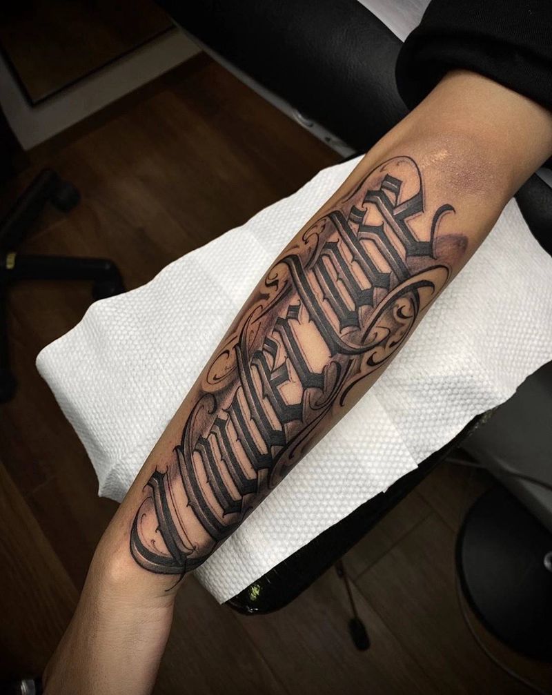 当前位置: 首页 >广东省惠州市纹身店-惠州秦刺青纹身图案>花体字纹身图片_手臂纹身图案