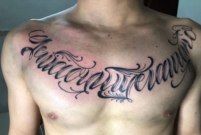 当前位置: 首页 >广东省惠州市纹身店-惠州秦刺青纹身图案>花体字纹身图片_胸部纹身图案