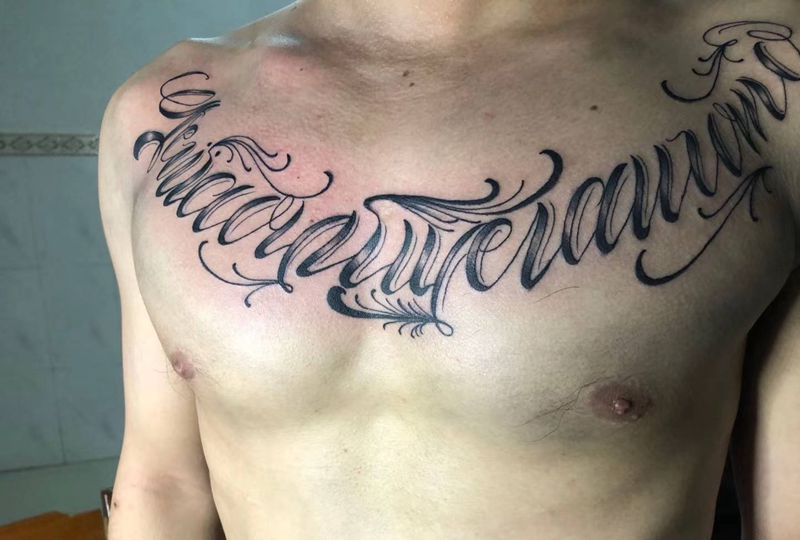 花体字纹身图片_胸部纹身图案