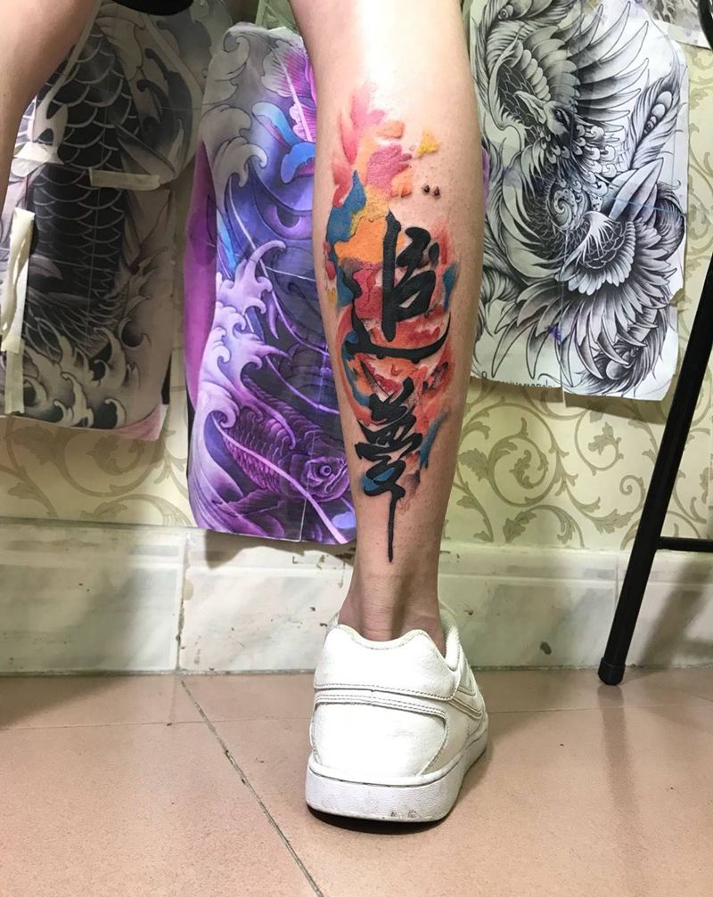 • T网红王老大花腿龙纹身图片_腿部新传统纹身图案