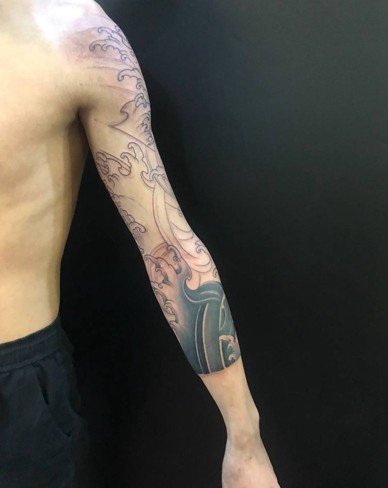 当前位置: 首页 >广东省惠州市纹身店-惠州秦刺青纹身图案>七分浪臂纹身图片