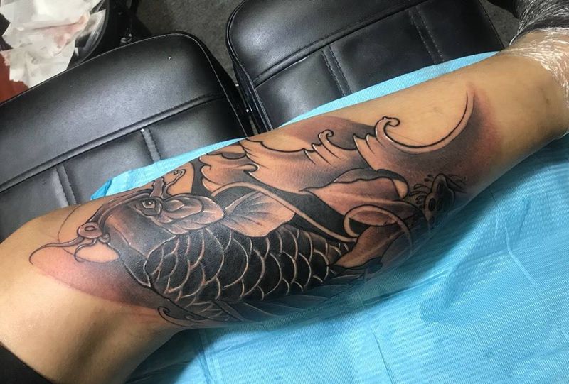 • T网红王老大花腿龙纹身图片_腿部新传统纹身图案