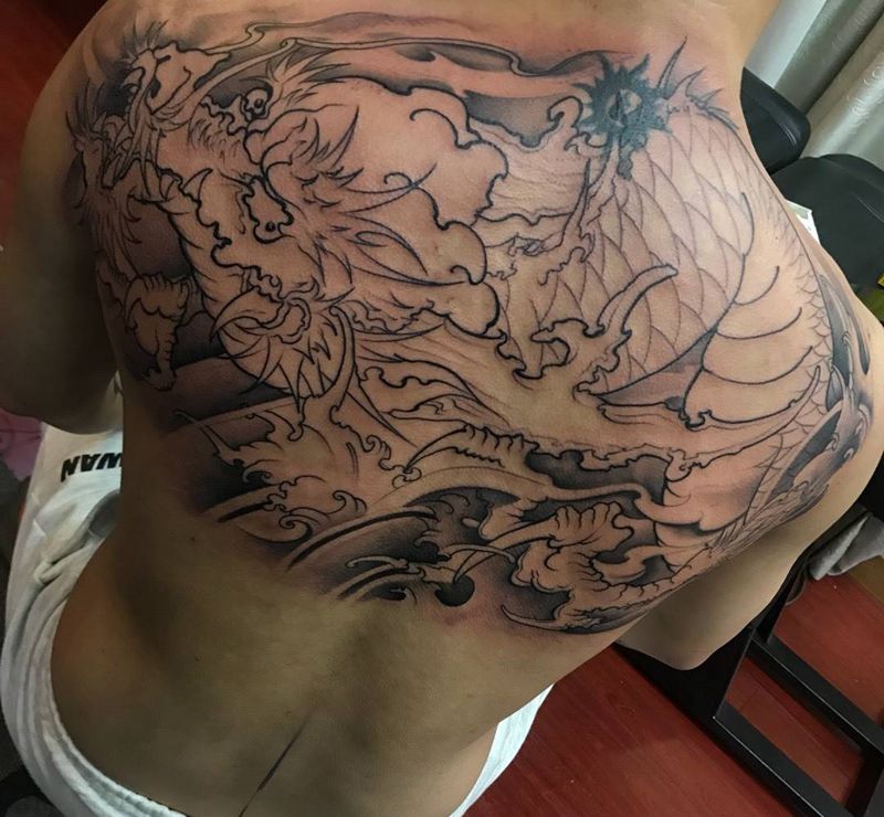 • T云龙九郎纹身图片_背部老传统云龙九郎纹身图案