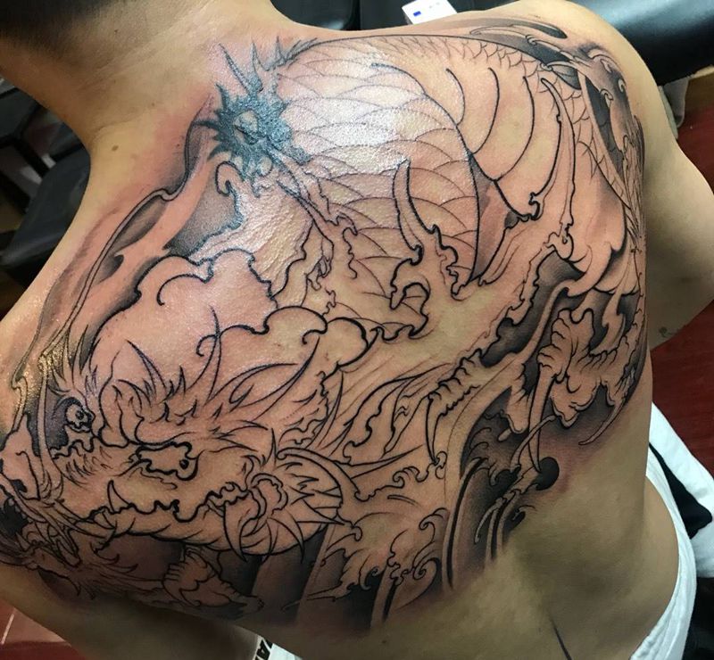 • T云龙九郎纹身图片_背部老传统云龙九郎纹身图案