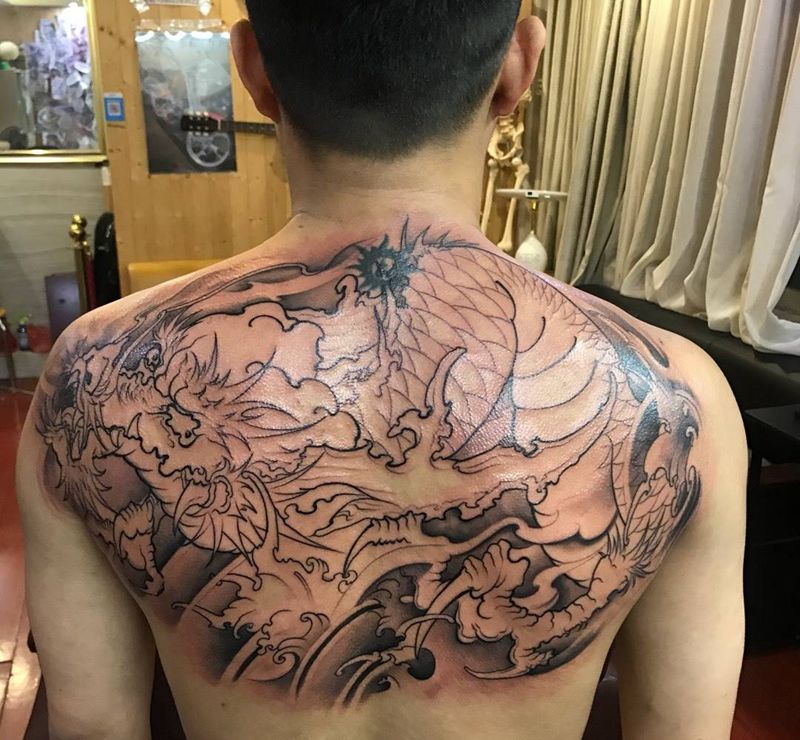 • T云龙九郎纹身图片_背部老传统云龙九郎纹身图案