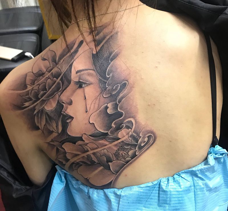 • 黑灰满背纹身图案
