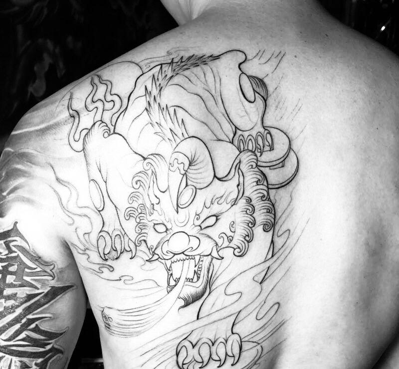 当前位置: 首页 >广东省惠州市纹身店-惠州秦刺青纹身图案>貔貅线条纹身图片_背部纹身图案