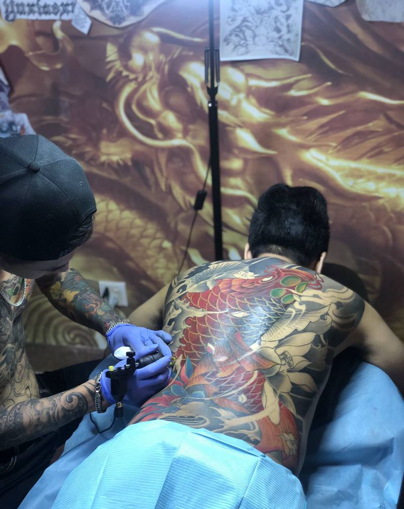 当前位置: 首页 >广东省惠州市纹身店-惠州秦刺青纹身图案>遮盖后背三个图 未完纹身图片_背部纹身图案