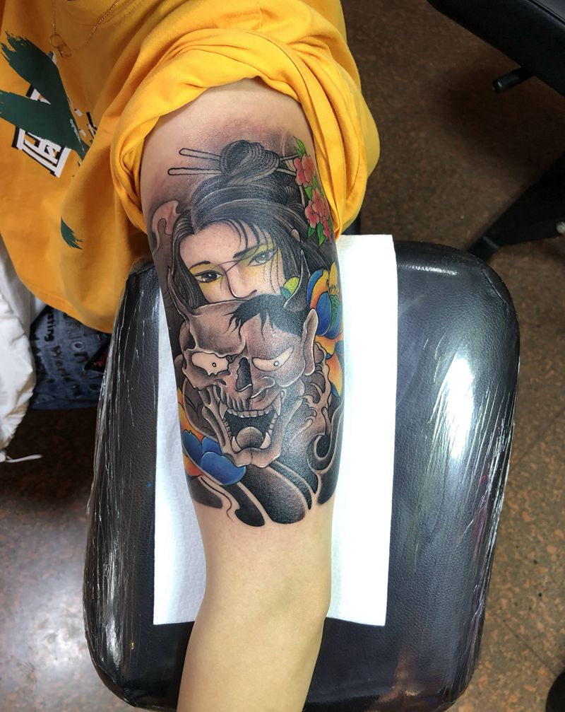 当前位置: 首页 >广东省惠州市纹身店-惠州秦刺青纹身图案>艺妓纹身图片_手臂纹身图案
