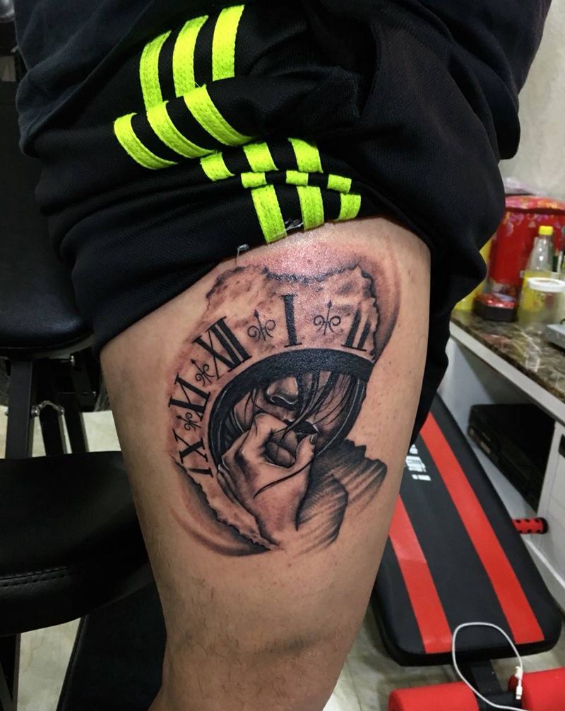 • T包小腿吹火男+阿多福纹身图片_腿部老传统新传统吹火男阿