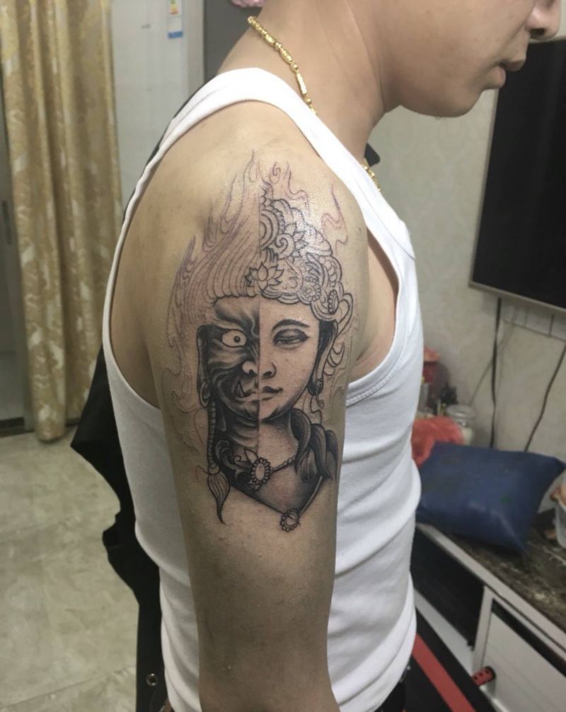 当前位置: 首页 >广东省惠州市纹身店-宏刺青纹身图案>佛与魔-未完成纹身图片
