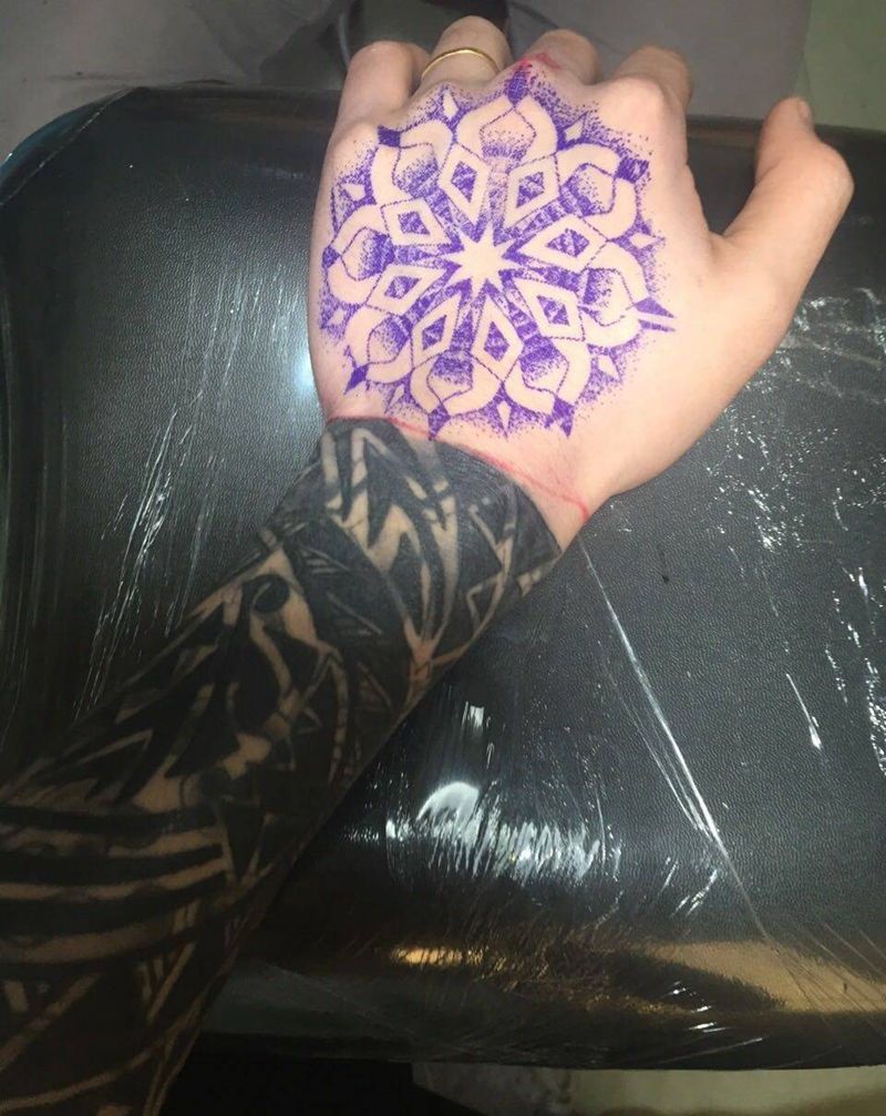• 手背潮流时尚的玫瑰花眼睛纹身图案