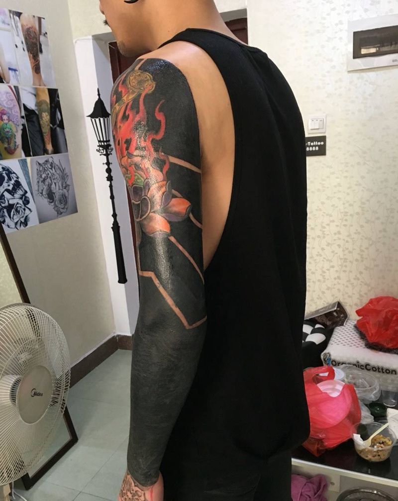 当前位置: 首页 >广东省惠州市纹身店-宏刺青纹身图案>黑臂-遮盖过程纹身图片