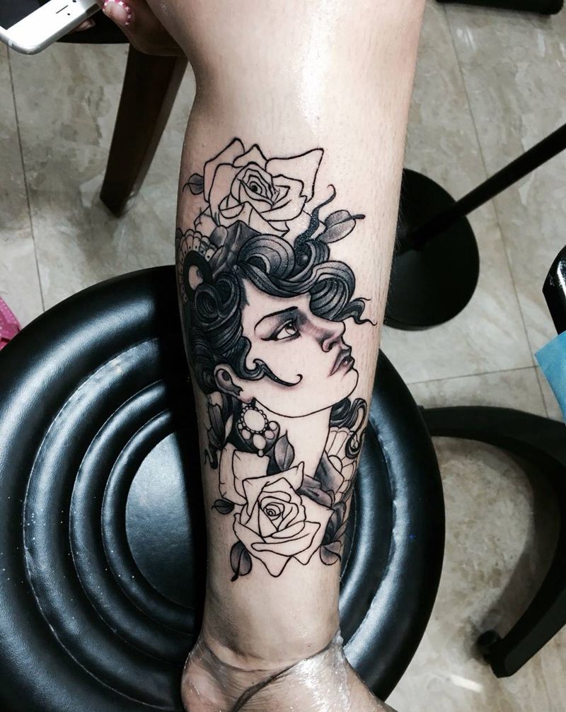 • T网红王老大花腿龙纹身图片_腿部新传统纹身图案