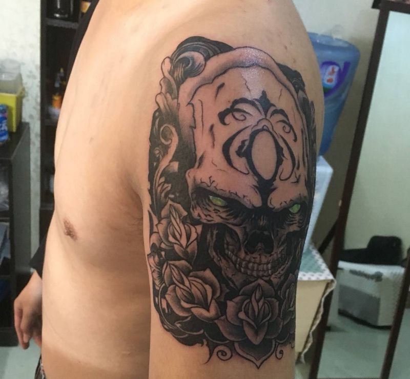 当前位置: 首页 >广东省惠州市纹身店-宏刺青纹身图案>暗黑系骷髅纹身图片