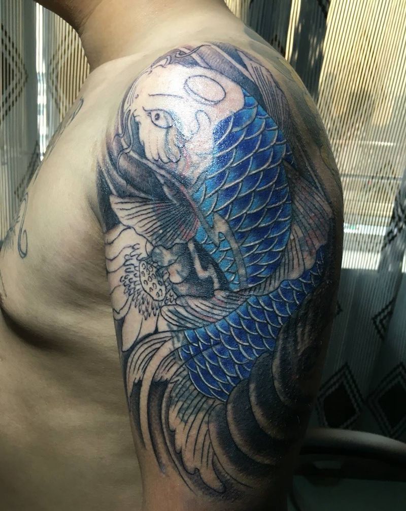 当前位置: 首页 >广东省惠州市纹身店-宏刺青纹身图案>《鲤鱼》遮盖未完成纹身图片