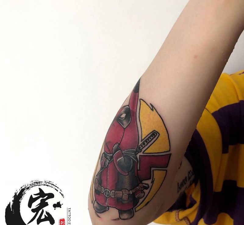 当前位置: 首页 >广东省惠州市纹身店-宏刺青纹身图案>“死侍版”皮卡丘纹身图片