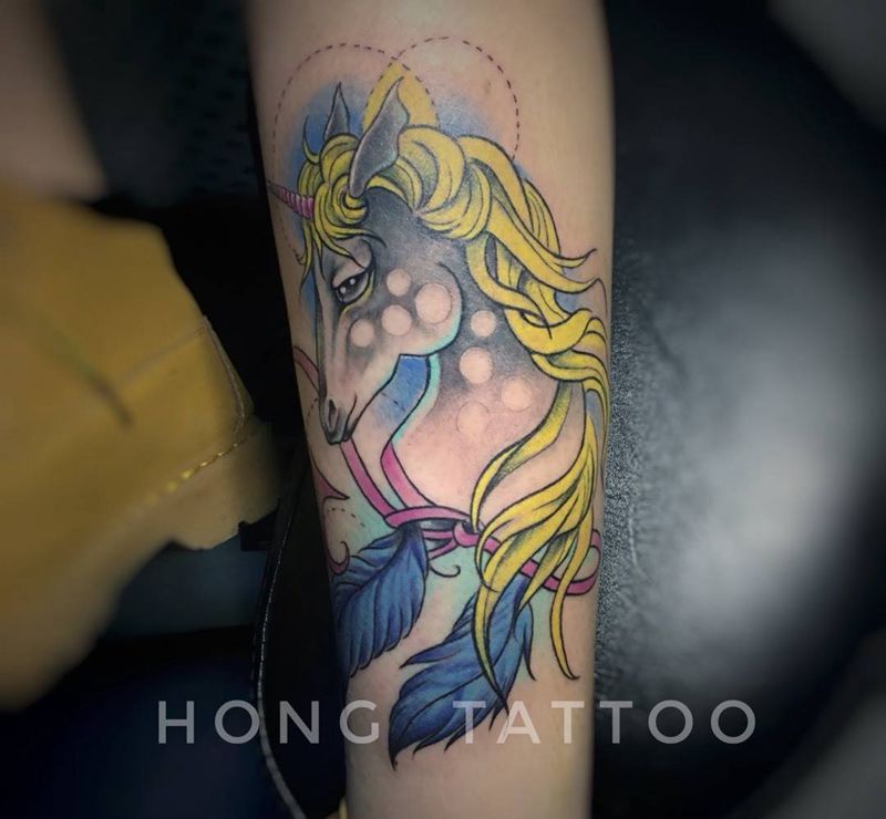 当前位置: 首页 >广东省惠州市纹身店-宏刺青纹身图案>独角兽纹身图片
