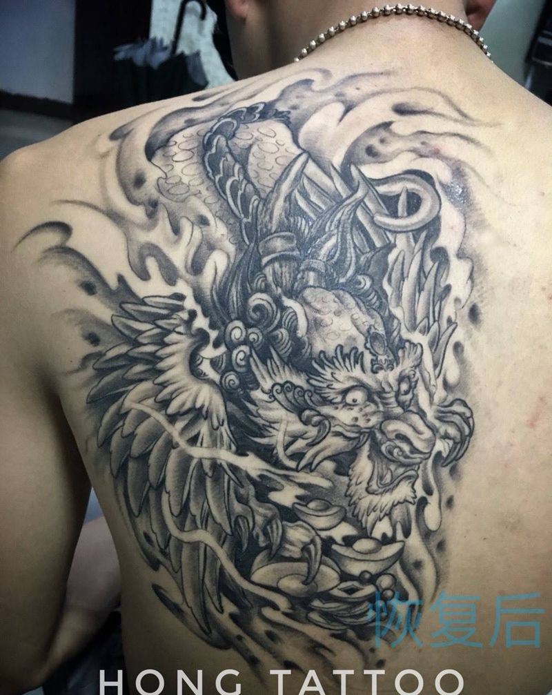 • 黑灰满背纹身图案