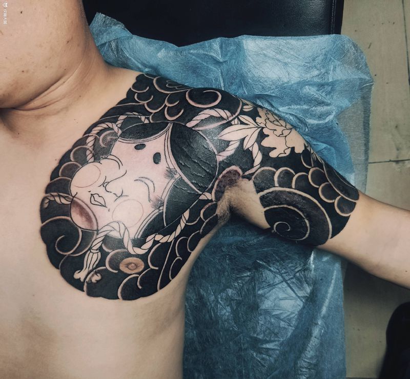当前位置: 首页 >广东省惠州市纹身店-惠州山海刺青纹身工作室纹身图案>日式半胛纹身图片_手臂胸部老传统阿多福日式半胛纹身图案