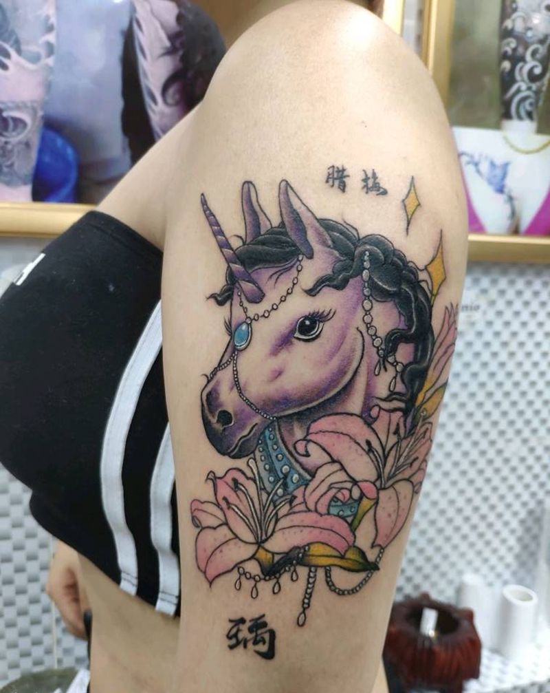 当前位置: 首页 >广东省惠州市纹身店-惠州山海刺青纹身工作室纹身图案>一对独角兽纹身图片_手臂水彩独角兽纹身图案