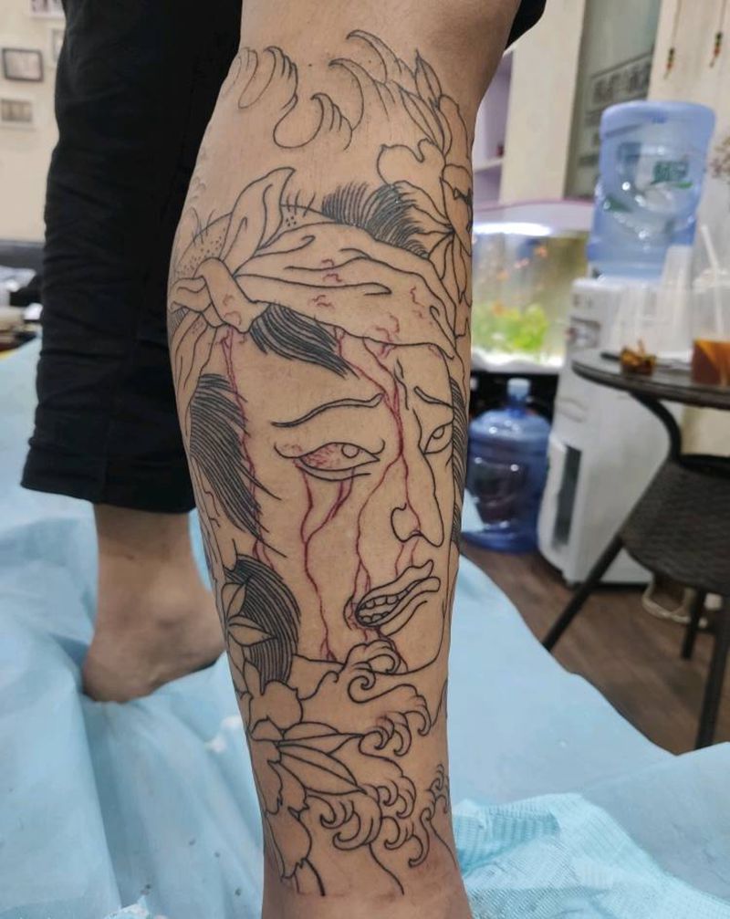 当前位置: 首页 >广东省惠州市纹身店-惠州山海刺青纹身工作室纹身图案>日式风格 生首 包小腿纹身图片_脚部老传统生首纹身图案