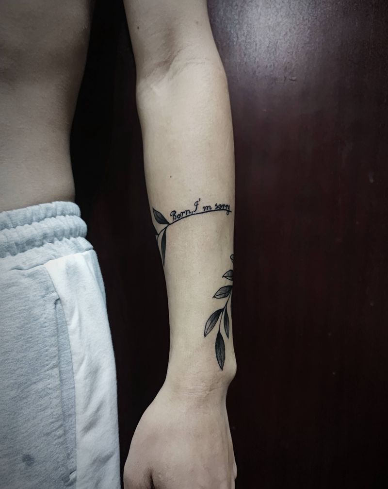 当前位置: 首页 >广东省惠州市纹身店-宏刺青纹身图案>绿叶环绕纹身图片_手臂纹身图案