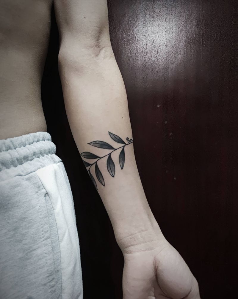 当前位置: 首页 >广东省惠州市纹身店-宏刺青纹身图案>绿叶环绕纹身图片_手臂纹身图案