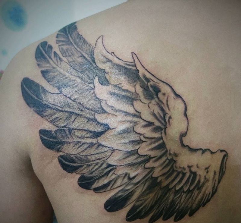 当前位置: 首页 >广东省惠州市纹身店-宏刺青纹身图案>自由纹身图片_背部新传统翅膀纹身图案