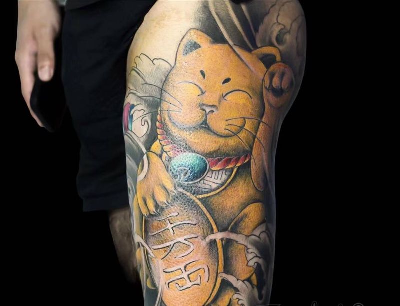• T网红王老大花腿龙纹身图片_腿部新传统纹身图案