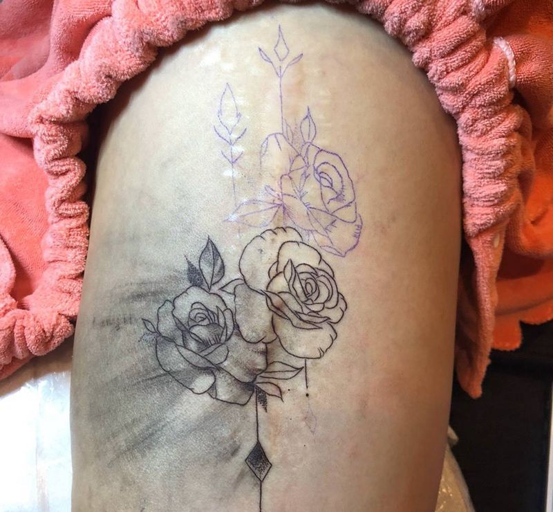 当前位置: 首页 >广东省梅州市纹身店-小八刺青工作室纹身图案>遮盖疤痕素花纹身图片