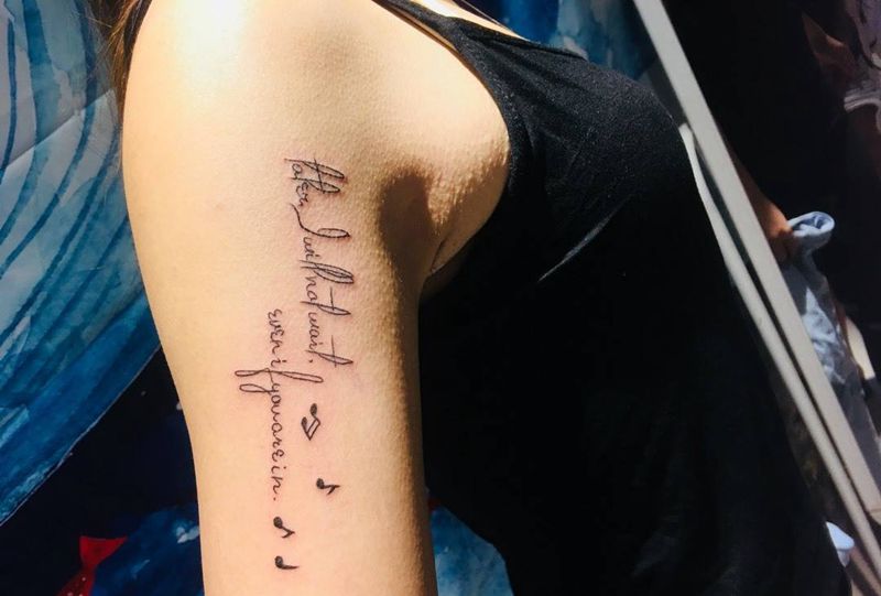 • T关于私处得爱!纹身图片_成品腹部清新字符图腾纹身图案