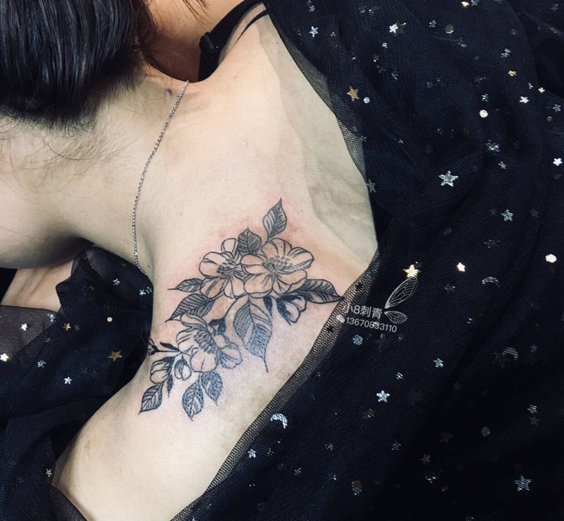 • 女性大花胸纹身_43张霸气漂亮的女性大花胸纹身图案作品