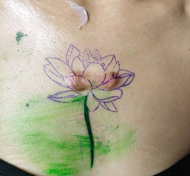 疤痕遮盖纹身图片_胸部水彩小清新纹身图案