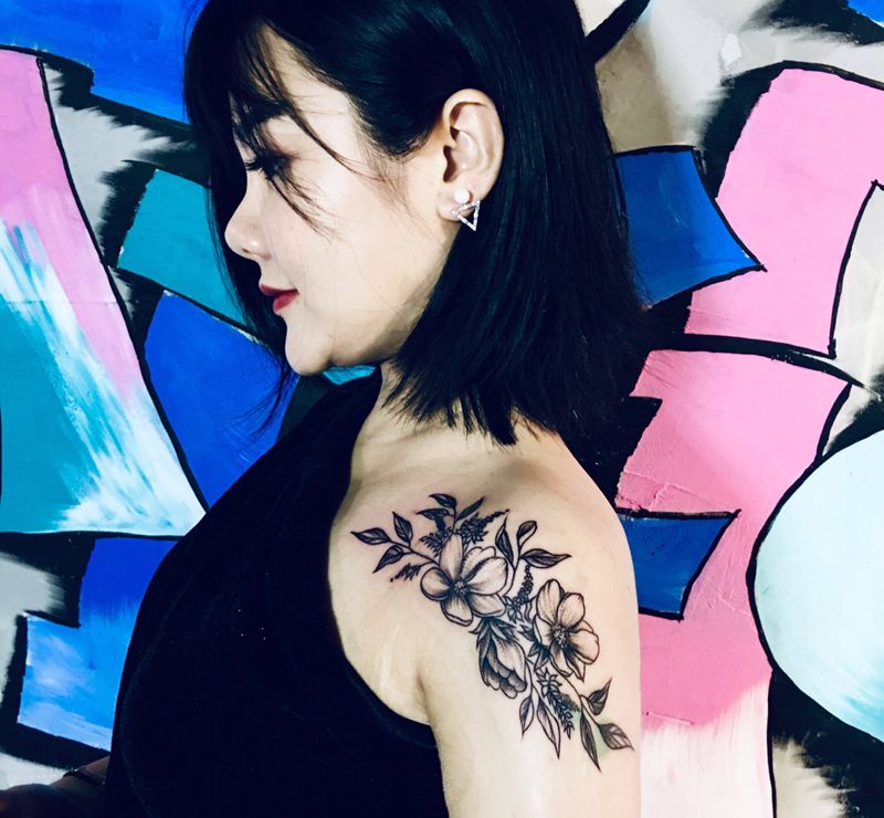 • 女性大花胸纹身_43张霸气漂亮的女性大花胸纹身图案作品