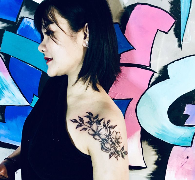 • 女性大花胸纹身_43张霸气漂亮的女性大花胸纹身图案作品