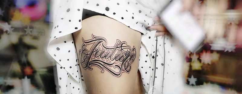 当前位置: 首页 >广东省梅州市纹身店-小八刺青工作室纹身图案>花体字纹身图片_脚部腿部花体字纹身图案
