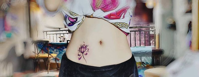 • 时尚性感的腹部莲花纹身图案