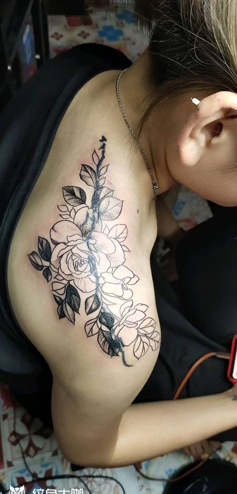 遮盖旧纹身纹身图片_肩部素花纹身图案