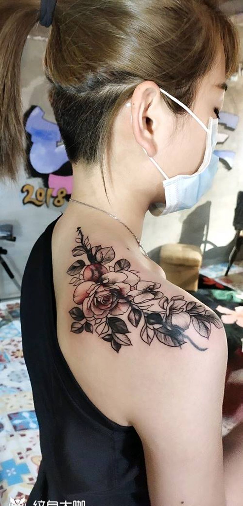 遮盖旧纹身纹身图片_肩部素花纹身图案
