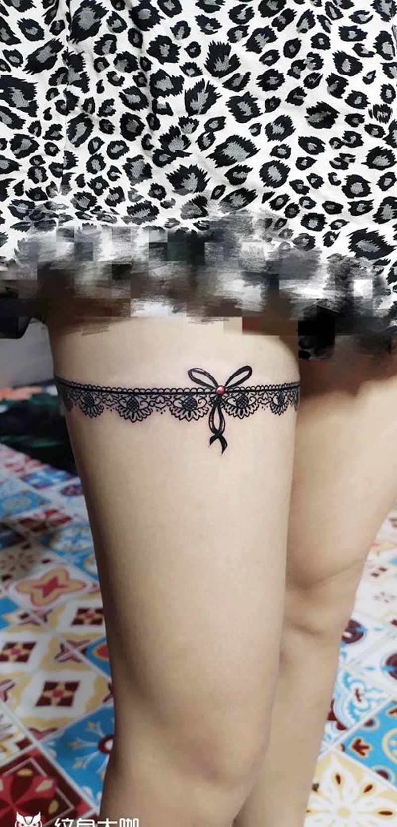 蕾丝纹身图片_腿部蕾丝控纹身图案