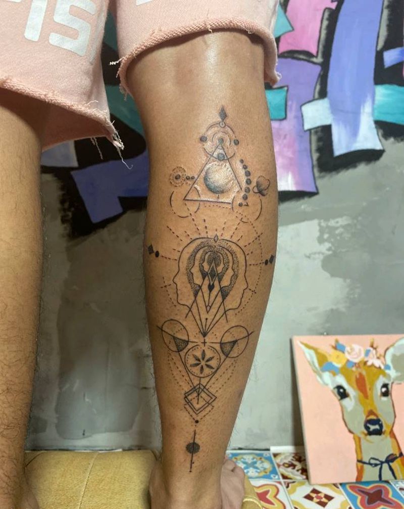 几何点刺纹身图片_腿部点刺几何纹身图案