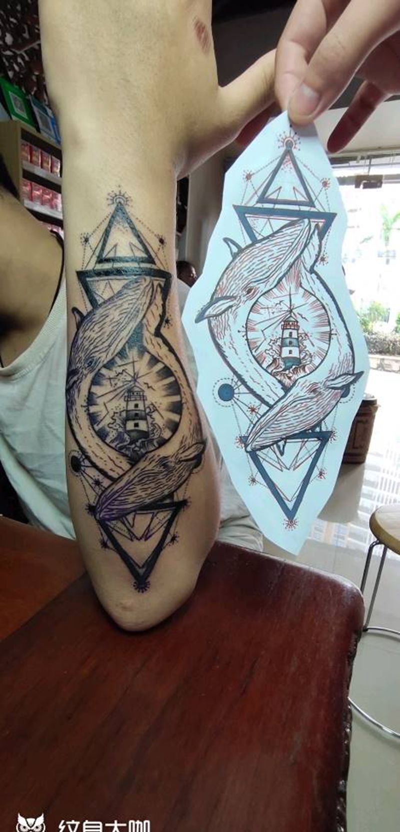 当前位置: 首页 >广东省梅州市纹身店-小八刺青工作室纹身图案>几何鲸鱼纹身图片_手臂点刺几何纹身图案